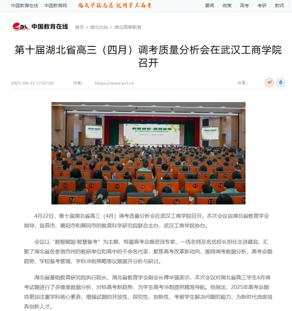 湖北省基础教育研究院执行院长、湖北省教育学会副会长傅华强表示,本次会议对湖北省高三学生4月调考试题进行了多维度数据分析,对标高考新趋势,为学生高考冲刺提供精准导航。他指出,2025年高考命题将更加注重学科核心素养,增强试题的开放性、探究性、创新性,考察学生解决问题的能力,为新时代选拔培养创新人才。