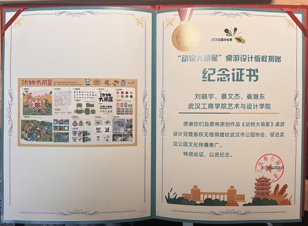 “动物大萌星”桌游设计版权捐赠纪念证书