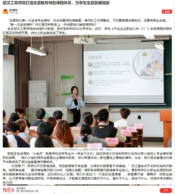 如何发挥生涯教育的优势赋能学生生涯发展以及未来职业发展?作为湖北省第一家生涯教育本土化试点高校,新葡的京集团35222vip一直试图在教学与实践中寻找突破的方向。