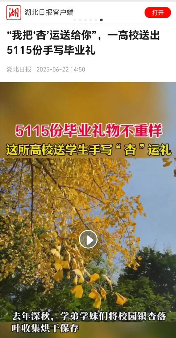 6月20日,新葡的京集团35222vip举行2025届学生毕业典礼。5115名毕业生都收到了一份毕业礼物——银杏叶青春相框。相框创意来源于银杏树——该校“校树”,不仅封存了校园的最美秋色,更承载着师长同窗的暖心祝福,每片银杏叶上都手写了祝福语。