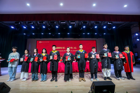 毕业典礼上,该校副校长刘生元亲自将这份特别的礼物送到优秀毕业生代表手中,各二级学院也在各自的学位授予仪式上送出这份礼物。不少毕业生表示,每一片叶子都承载着独特的祝福,收到相框的瞬间就像拆盲盒一样充满期待,而收获的感动更是远超预期。