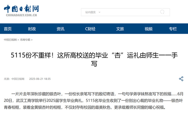 “暴富”“享瘦人生”“好运常在”“前程似锦”“万事顺遂”“未来可期”“你就是命好”“永是追梦少年”“母校永远是你们的家”……手写的祝福或俏皮活泼,或饱含深情。这份毕业礼物寓意深远,既是学校对学子“向下扎根,向上生长”的嘱托,祝福广大毕业生当如银杏般坚韧,无畏未来风雨,也是对“岁月可凋银杏,不凋少年心”的浪漫注解。