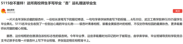据悉,这份相框的创意源自该校标志性的银杏树。今年毕业季,这些承载着时光印记的叶子被取出,由学弟学妹、毕业班辅导员和学院党总支书记亲手在每一片银杏叶上写下毕业祝福,并张贴定格在相框背卡上。