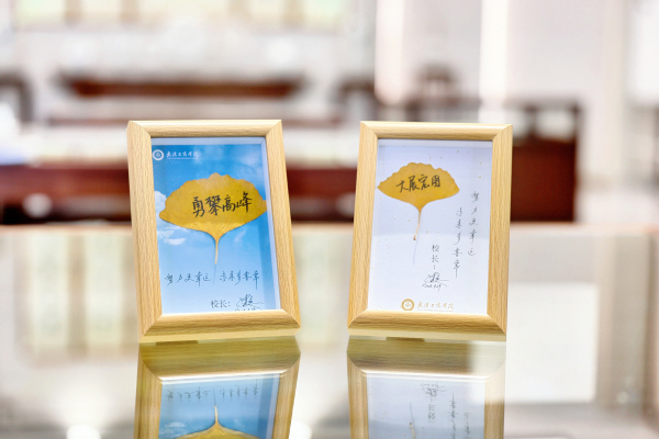 据悉,这份相框的创意源自该校标志性的银杏树,去年深秋,当金黄的银杏叶随风飘落时,学弟学妹们就开始了“秘密行动”,他们细心收集落叶,经过挑选、烘干、保存等工序,将一片片银杏叶珍藏至今。今年毕业季,这些承载着时光印记的叶子被取出,由学弟学妹、毕业班辅导员和学院党总支书记亲手在每一片银杏叶上写下毕业祝福,并张贴定格在相框背卡上。相框背卡上印有该校校长孔建益教授题写的“努力更幸运 未来多喜幸”寄语和签名。这份毕业礼物的相框和背卡有两种颜色,每一片银杏叶的形状、大小、颜色都不相同,手写祝福的内容和字体风格也各异,使得每一份毕业礼物都成为独一无二的青春纪念品。
