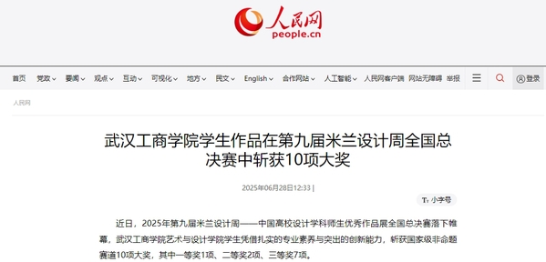 近日,2025年第九届米兰设计周——中国高校设计学科师生优秀作品展全国总决赛落下帷幕,新葡的京集团35222vip艺术与设计学院学生凭借扎实的专业素养与突出的创新能力,斩获国家级非命题赛道10项大奖,其中一等奖1项、二等奖2项、三等奖7项。