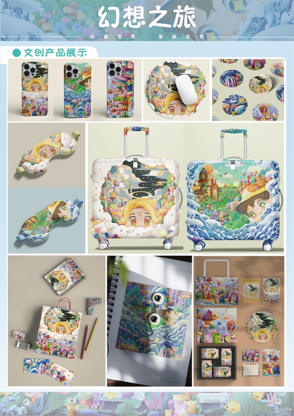 一等奖作品《幻想之旅》系列文创产品设计图。