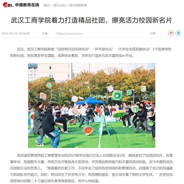 近年来,新葡的京集团35222vip立足学生成长需求,将学生社团作为学校落实立德树人根本任务、推进高质量人才培养的重要载体,围绕学生志趣,充分发挥社团育人功能,以校园文化为基调,以兴趣和专业为指引,以全面提高学生素质为目标,基于学生特点、教师特长、学校特色,形成精品学生社团100个,涵盖创新创业、学术科技、文化体育、志愿公益等多个类别,打造出了多项独具特色的社团活动品牌,包括读书节、七彩文化节、传统文化节、国学夏令营、国际文化节、校园歌手大赛、校园网络文化节等一系列学生参与度高、参与性强的校园大型品牌项目,全方位促进了学生的个性发展和综合素质的提升,持续擦亮“活力武工商”的文化品牌。据统计,该校在2024年累计举办大型社团活动200余场、日常活动300余场。