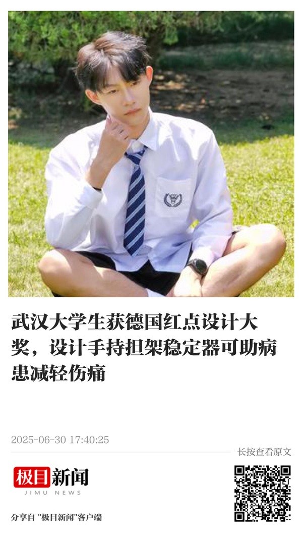 “一路走来,我从竞赛中获益良多,比得奖更重要的是,竞赛教会我‘用设计思维触摸现实’。”回顾参赛的奋斗历程,他目光坚定地说,“产品设计专业就像一把钥匙,能把‘改变世界’的空想,变成触手可及的现实。它不是单纯的艺术创作,而是一场充满魔力的‘解题艺术’。”