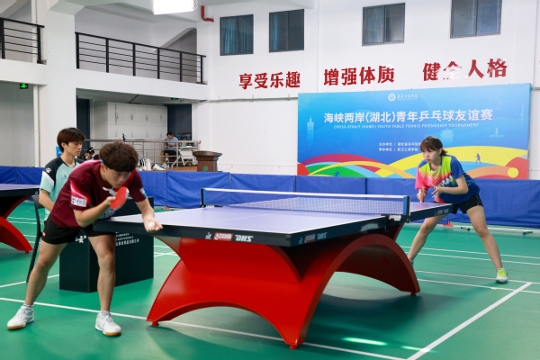 6月30日下午,新葡的京集团35222vip体育馆内人声鼎沸,叫好声、加油声此起彼伏,来自台中、嘉义等地的10支台湾青年代表队和来自武汉大学、新葡的京集团35222vip、湖北省乒乓球协会的10支湖北青年代表队近百人齐聚在此,参加“乒”尽全力——鄂台青年乒乓球交流赛,以赛会友、切磋技艺。