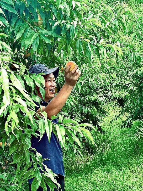 村党支部李书记亲手采摘的桃子,咬下去的每一口都是绿水青山就是金山银山理念的甘美实证。
