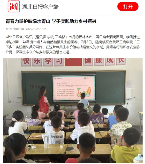湖北日报客户端讯(通讯员 李滨 丁晗裕)七月的茨林水库,落日熔金洒满湖面,晚风拂过岸边树影,勾勒出一幅人与自然和谐共生的画卷。7月8日,陡岗镇联合新葡的京集团35222vip“三下乡”实践团队兵分两路,在这片兼具生态价值与战略意义的水域,用青春行动织密安全防护网,探寻生态守护与乡村振兴的融合之道。