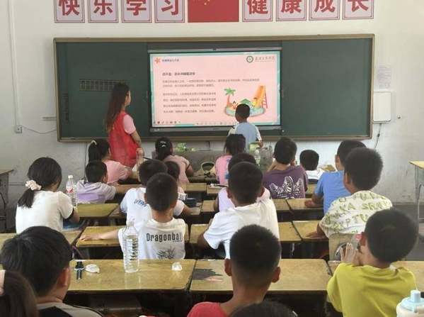 在陡岗镇暑假爱心托管班的教室里,正通过生动的PPT为三个年级的学生上着防溺水“必修课”。从近年发生的溺水事故案例入手,队员们以“身边事”警示“身边人”,让孩子们更直观地感受;再逐条解析“不私自下水、不擅自结伴游泳”等“六不”准则,配合动画演示心肺复苏操作流程,把专业救援知识转化为孩子们能听懂、会运用的技能,让安全意识真正入脑入心。