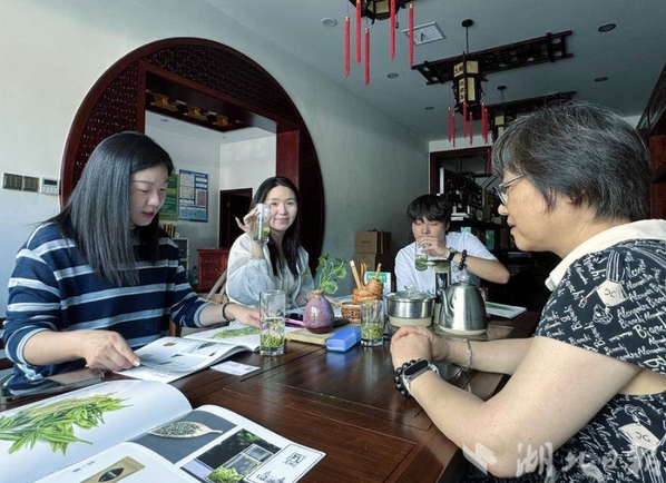 7月10日下午,李梦洁、梁爽老师带领学生会干部张恒嘉和赵博文,踏上九畹溪丝绵茶品鉴之旅。在茶舍,老师傅介绍了丝绵茶的悠久历史,并冲泡了剪刀岩・宜昌毛尖、九畹丝绵茶、剪刀岩・宜昌宜红等茶品,队员们还了解到不同丝棉茶的特色和功效。之后,启阳志愿服务队与 “半盏青绿” 茶舍达成合作,助力丝绵茶推广。