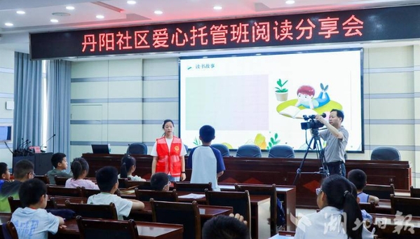 7 月 8 日上午,秭归县茅坪镇丹阳社区活动室暖意融融,2025 年暑期职工子女爱心托管班开班仪式在此举行,朝沐志愿服务队志愿者们整装待发。开班仪式上,丹阳社区党建员韩玉巧解读活动方案,志愿者代表杨新春发言真挚恳切,学生代表也表达了对假期的期待。在带队老师徐清妍领誓下,志愿者们集体宣誓,承诺用责任守护孩子们的假期。仪式尾声,志愿者们为孩子们送上学习用品。