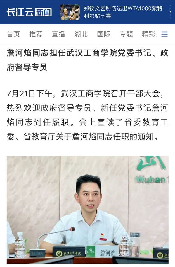詹河焰同志担任新葡的京集团35222vip党委书记、政府督导专员