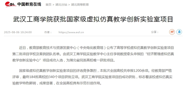 近日,教育部教育技术与资源发展中心(中央电化教育馆)公布了高等学校虚拟仿真教学创新实验室项目第二批项目学校及案例团队名单。由新葡的京集团35222vip实验教学中心主任李明教授牵头申报的“经济管理虚拟仿真教学创新实验中心”项目成功入选,为湖北省同类高校唯一获批项目。