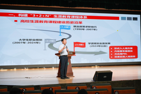 除了延续就业与创新创业教育之外,他大力推进大学生生涯教育本土化与校本化实践,致力于以生涯教育精准滴灌,赋能学生个性化职业发展路径与人生成长成才。