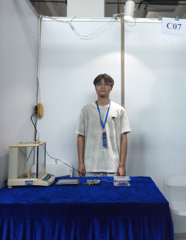 而他在湖北省大学生物理实验创新竞赛中则上演了“绝地翻盘”。提交初赛作品后,赵双明自感晋级无望,便将作品拆解以利用元器件。一个多月后,却意外接到了入围决赛的通知。面对几乎不可能完成的任务,他选择了迎难而上。利用之前开发智能家居系统剩余的电路板,他迅速确定了重构方案:重新编写核心程序,将传感器更换为响应更敏捷的压电传感器,并专门设计了一套直观的UI触摸界面以提升交互体验。那段时间,他白天焊接调试、编写代码,夜晚与队友并肩整理文档、完善报告,在截止日期的前一天,终于交付了一套全新的系统,并斩获一等奖。