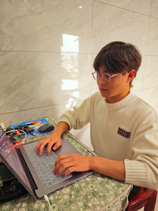 从此,赵双明开始了比同龄人更紧凑的“双线生活”:寒暑假在酒店打工赚取生活费,下班后仍继续调试项目、研究电路;在校期间则借助学校竞赛奖励、协助老师完成课题、承接技术定制等方式,持续投入学习与开发。他将时间规划得严密有序,假期侧重实践积累,学期专注课程与项目。