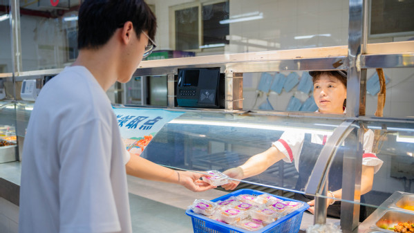 当天,学校在枫华园餐厅、畅怀园餐厅均设置了月饼领取点。食堂工作人员将一枚枚精心准备的月饼送到前来就餐的师生手中,并送上“中秋快乐”的诚挚祝福。现场洋溢浓浓的节日氛围,不少同学接过月饼时,脸上写满开心与感动,一些学生表示,虽然中秋未能回家,但送到手中的月饼让他们感受到了家人般的关怀。
