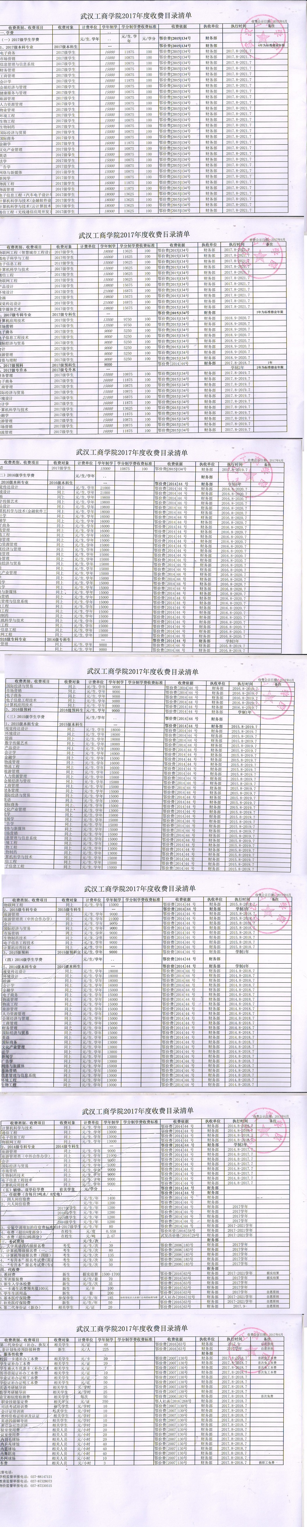 根据省教育厅、省物价局《关于我省民办普通高等学校学费标准备案及有关问题的通知 》(鄂价费(2016)63号文)的文件精神,经向湖北省教育厅、湖北省物价局备案,我校2017年收费目录清单公布如下: