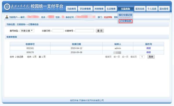 点击明细可查询具体缴费信息。