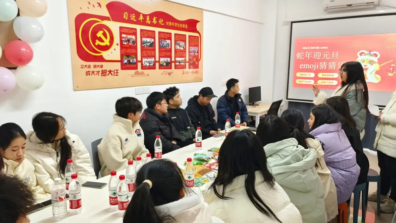 新闻中心讯(记者 饶凌玮)近日,电商学院与物流学院携手在驿站内举办了一场别出心裁的元旦活动——《蛇年迎元旦,emoji猜猜乐》,旨在庆祝佳节,弘扬传统文化,同时增进两院学生之间的友谊与合作。电商学院分团委书记朱懿、物流学院分团委书记聂港和部分物流学院与电商学院的学生参与此次活动,师生共度美好时光。