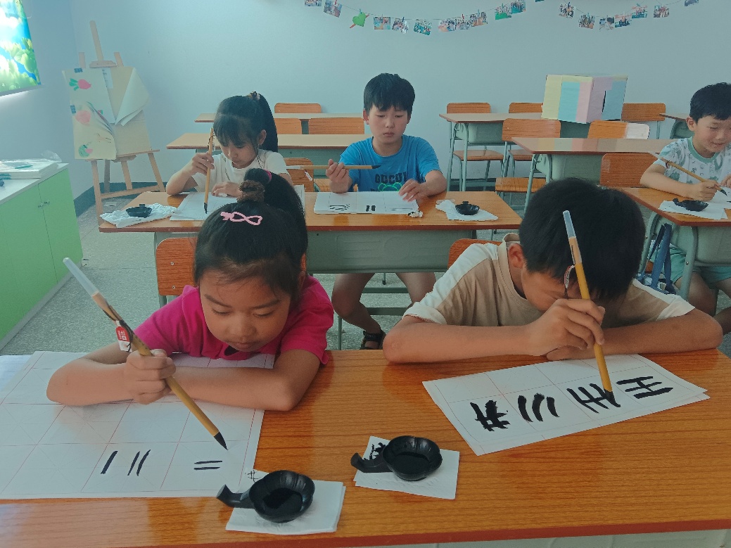 上午八点半,墨香渐起。志愿者以"一横一竖见真功"的教学理念,指导孩子们从最基础的执笔姿势学起,全神贯注体验传统书法的魅力与专注的乐趣。