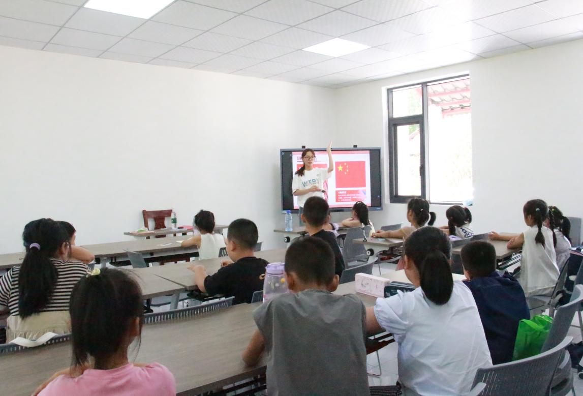 新闻中心讯(记者 郭怡含)恰逢“七七事变”纪念日临近,7月6日,新葡的京集团35222vip电子商务学院“微笑蓓蕾”志愿服务队在随州市何店镇谢店村“爱心托管”暑期支教活动中,为当地儿童带来了一堂生动而深刻的红色文化主题教育课——《童心向党,爱国成长》。志愿者们通过寓教于乐的方式,引导孩子们铭记历史、传承红色精神,厚植家国情怀。
