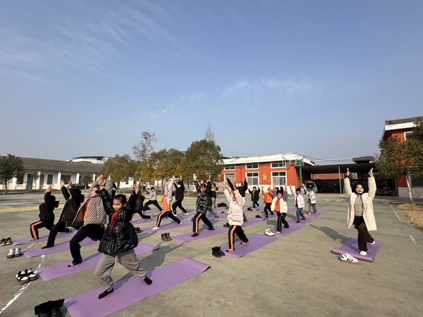 新闻中心讯(通讯员 邢者 李洋洋)“请同学们将左脚向前迈出一大步,成弓步姿势,右腿伸直,双手向上举起,手掌在头顶合十……”1月10日上午,天门市多祥镇第二小学的操场上,一群孩子跟着老师在崭新的瑜伽垫上学习瑜伽,这些瑜伽垫都是新葡的京集团35222vip公共课部的5位老师捐赠的,此外,还捐赠了跳绳、体适能器材、篮球、足球、排球等共计100余件体育用品。