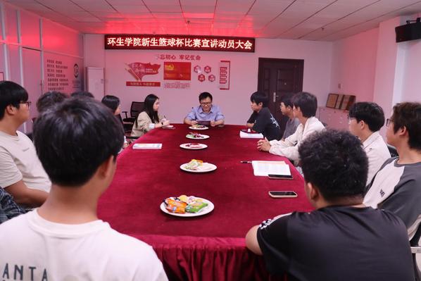 2025年10月17日中午,环生学院在弘德楼1118会议室召开2025级新生篮球杯比赛宣讲动员大会。参加会议的有环生学院党总支副书记王强、分团委学生会相关干部、环生学院参加新生篮球杯的全体队员。会议由环生学院分团委书记尹佳丽老师主持。