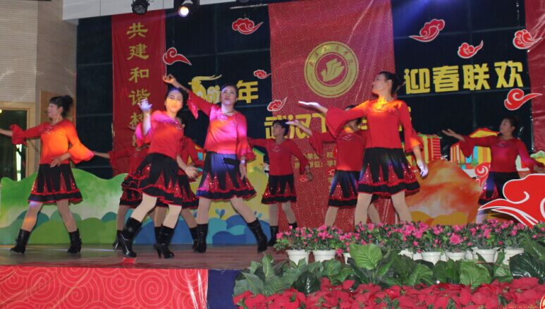 由后勤工会选送的节目是广场舞串烧 《 我爱广场舞、张灯结彩、小苹果》,由 9名保洁组成的舞蹈队,身着红裙,喜气洋洋,时而动感四射,时而民族风十足,跳到到最后一首小苹果时,全场氛围热烈,领舞青春版小苹果和后面广场舞版小苹果相映成趣,最终赢得满堂喝彩。最后获得团体第三名的好成绩。