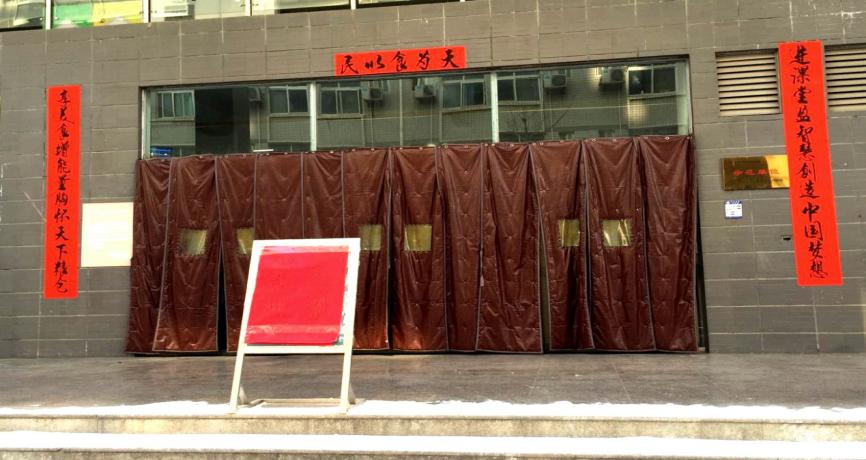 雪天路滑,食堂在门口设立温馨提示,并及时采取防滑措施方便大家出入。此外,为让就餐者提前感受到新春之意,一食堂更是将春联挂上,努力为大家奉上最有温度的表达。