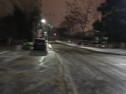 下午七点半左右,校园道路严重结冰,严重影响出行。保卫部及物业部全体人员积极加入除冰队伍。经过几个小时的努力,后勤人员完成校园的主干道上的撒盐化冰工作。