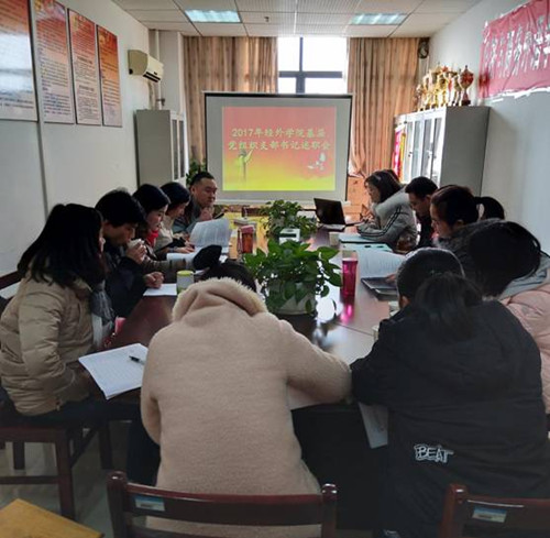 2018年1月8日上午9:00整,经外学院党总支书记胡航、各教师党支部书记、学生党支部书记以及教师代表、学生代表参加了2017年经外学院基层党组织支部书记述职会。会上经外学院党总支书记胡航先做了本次大会的要求以及会议流程,然后各支部书记作述职演讲,最后经外学院党总支书记胡航就各位支部书记的述职内容作了总结,并对往后的基层党组织活动寄予了深切期望。