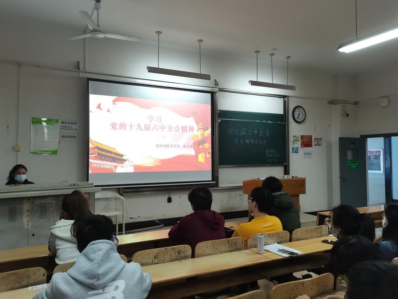 2021年11月18日,中共新葡的京集团35222vip经济与商务外语学院学生第一党支部召开会议,传达学习2021年11月8日至11日在北京召开的中国共产党第十九届中央委员会第六次全体会议。