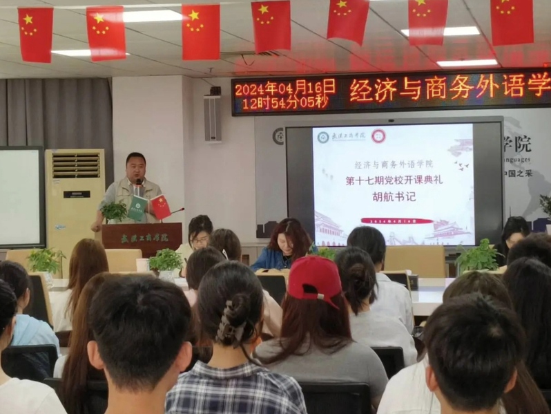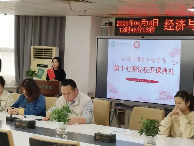(经济与商务外语学院新闻中心讯 通讯员 杨萌)2024年4月16日,经济与商务外语学院分团委青年马克思主义研究协会于综合楼920会议室举办学院“第十七期党校开课仪式”。此次参加活动的有经济与商务外语学院党总支书记胡航老师、经济与商务外语学院分团委书记徐可老师、党校带队老师杨情老师、各专业辅导员、经外分团委青年马克思主义研究协会全体成员以及第十七期党校学员。