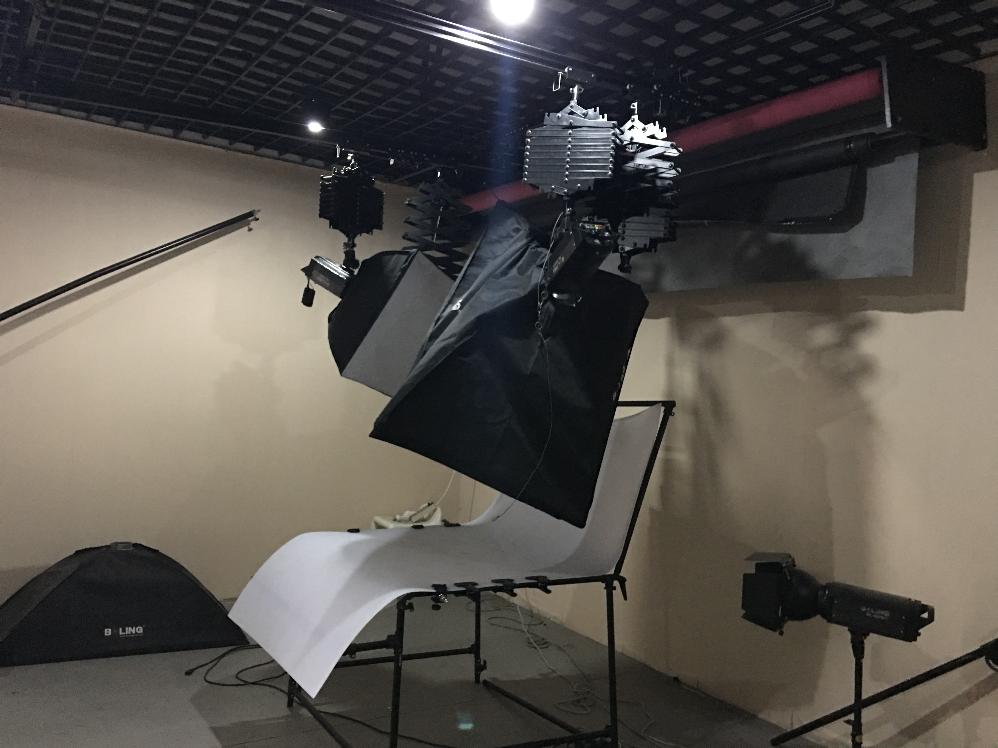 主要的仪器设备有:电动背景幕、产品展示台、Nikon照相机、闪光灯、束光灯等。