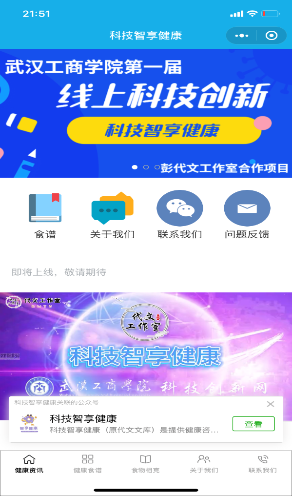 彭代文工作室微信公众号、科技智享健康宣传网、微信公众号大力宣传