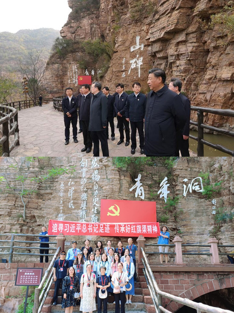 7月6日,老师们前往青年洞,走千里“水长城”,看林州人民团结一心、众志成城而形成的强大凝聚力和战斗力。在庙荒村、止方村和下里街村,深刻感受红旗渠精神出彩新时代,一个个贫困村在党建引领下实现乡村振兴。