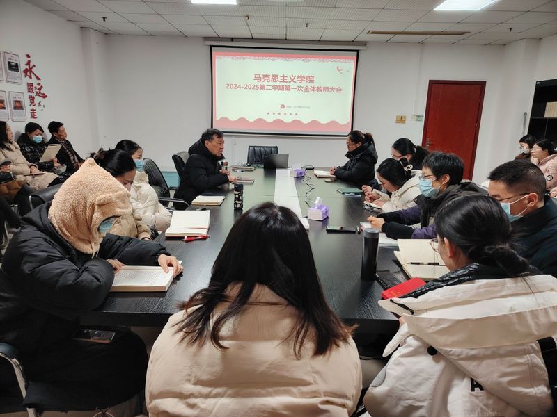 (通讯员 姜倩)2025年2月10日上午9:00,马克思主义学院在1102会议室召开期初全体教师大会。此次大会旨在明确新学期的教学工作目标,强调审核评估的重要性,并对试卷材料归档等教学管理工作进行规范与指导。学院全体教师齐聚一堂,共同参与了此次会议。