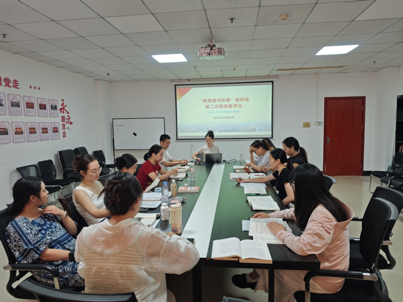 (通讯员 卢艳娜)2025年9月4日,马克思主义学院“新思想与形策”教研室在1102教室组织召开《习近平新时代中国特色社会主义思想概论》课程第二次集体备课会。会议由张磊老师主持,教研室全体教师参加。