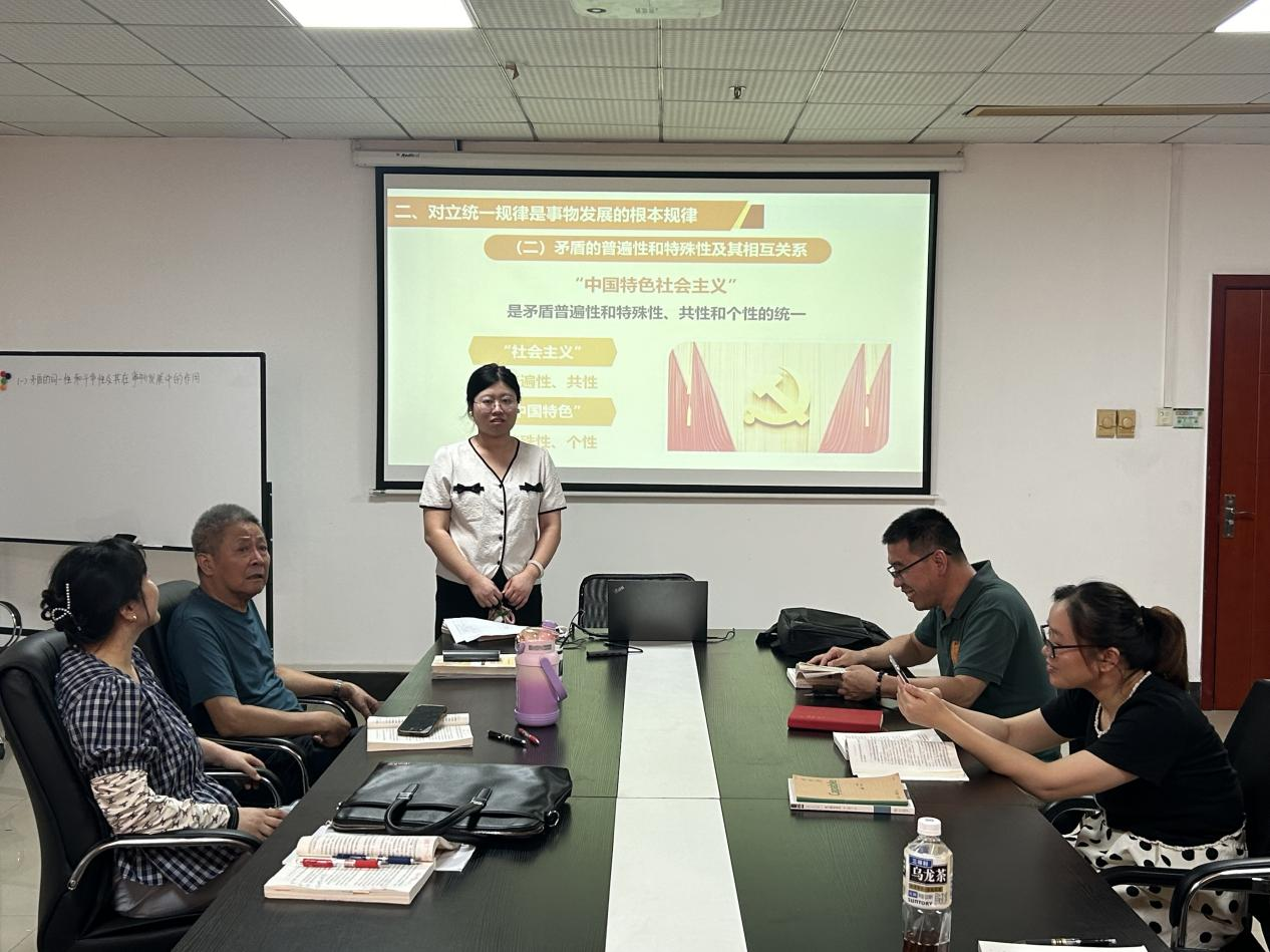 (通讯员 李梦茹)为持续精进课程教学质量,强化对马克思主义理论精髓的深度解析与教学转化,2025年10月9日,马克思主义学院“原理与概论”教研室精心组织开展了《马克思主义基本原理》课程第二次集体磨课会。此次会议聚焦“矛盾的同一性和斗争性及其在事物发展中的作用”这一核心教学板块,由潘慧苗老师进行教学展示,教研室全体教师共同参与观摩研讨,共谋教学优化路径。