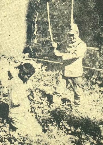 ·惨无人道的日本军官在杀人后,提着一个砍掉的脑袋的耳朵,洋洋得意地照相(图4)