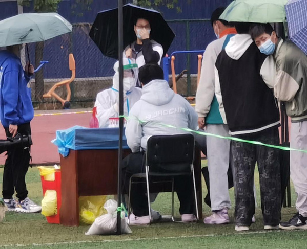 (图为医护人员为学生做核酸)