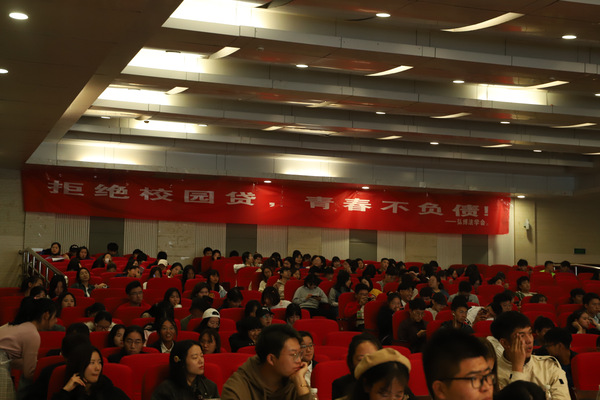 为了让参加活动的师生能更理解模拟法庭的相关案情,同学们首先上演了一场“校园贷”的情景剧。一边是天堂的诱惑,一边是地狱的折磨,热点话题与舞台剧的碰撞,情景剧展示了一位学生因不理性消费而掉入校园贷陷阱不堪其扰的过程,演员们惟妙惟肖的表演不仅获得同学们的阵阵掌声,同时也让在场的同学们直观认识到不理性消费以及陷入校园贷后的巨大危害。