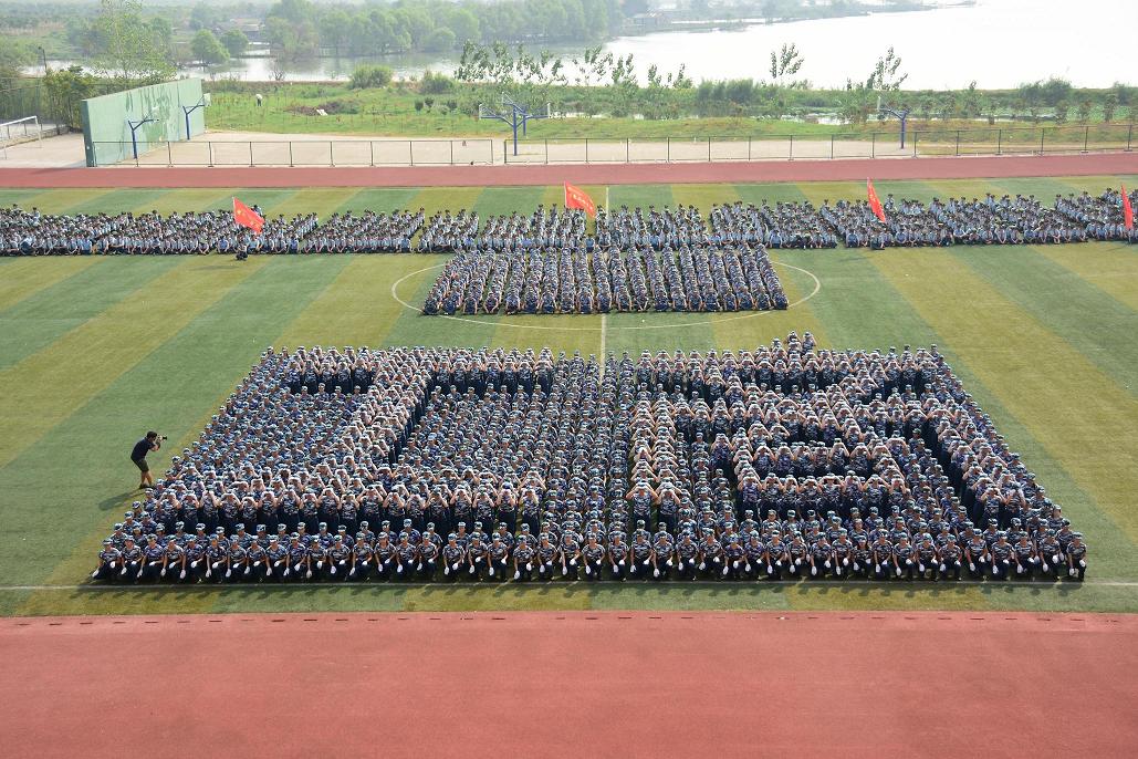 在阅兵式上,来自该校各学院的34支军训方队、1个拳术方阵、2个花样方阵在此接受校党委书记陈伟和军训团团长的检阅。