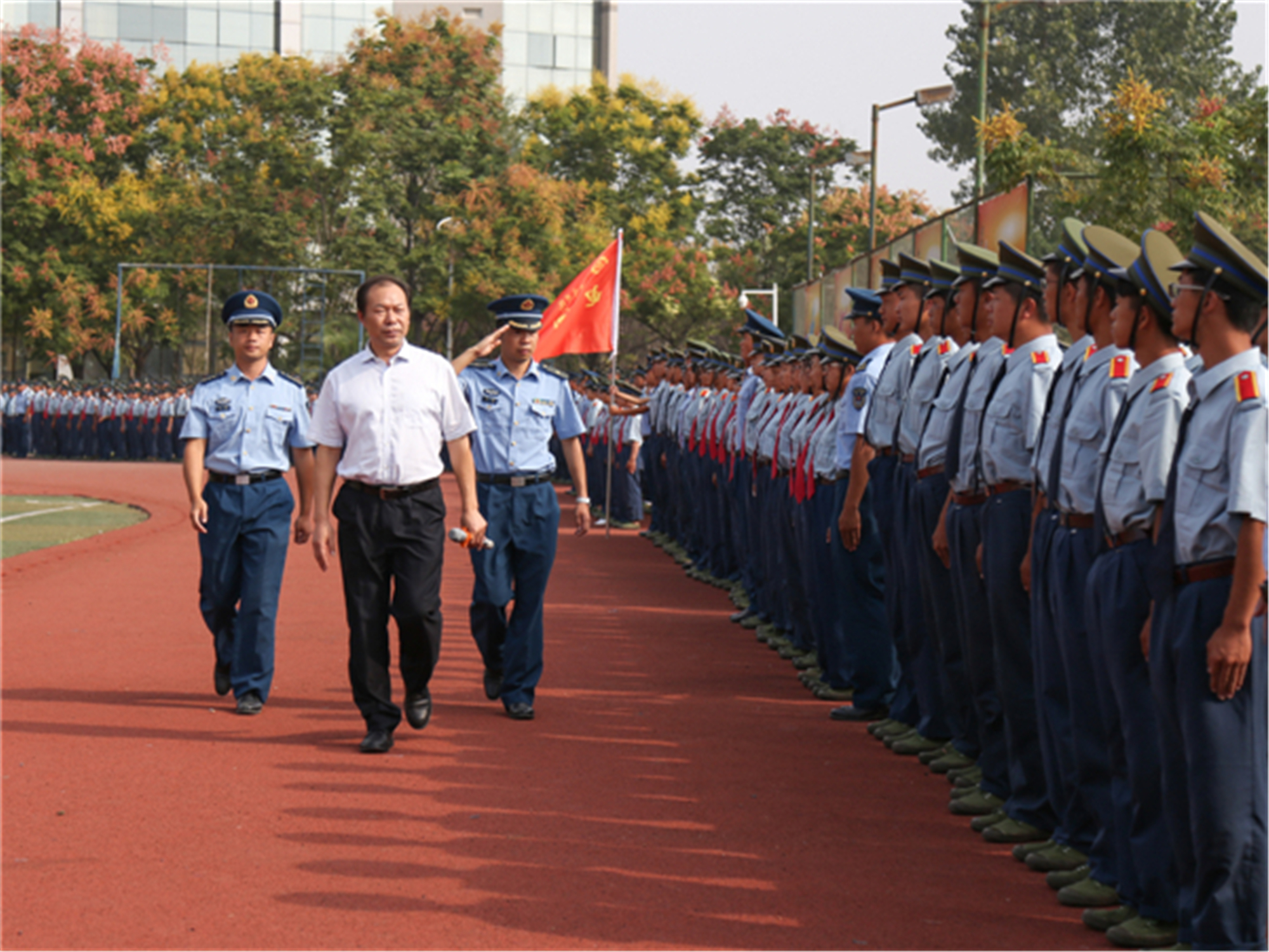 张金隆校长发表了热情洋溢的讲话。他首先代表学校向2016级新同学表示真诚的祝贺和热烈的欢迎,向教官们和新生辅导员们表示诚挚的谢意。