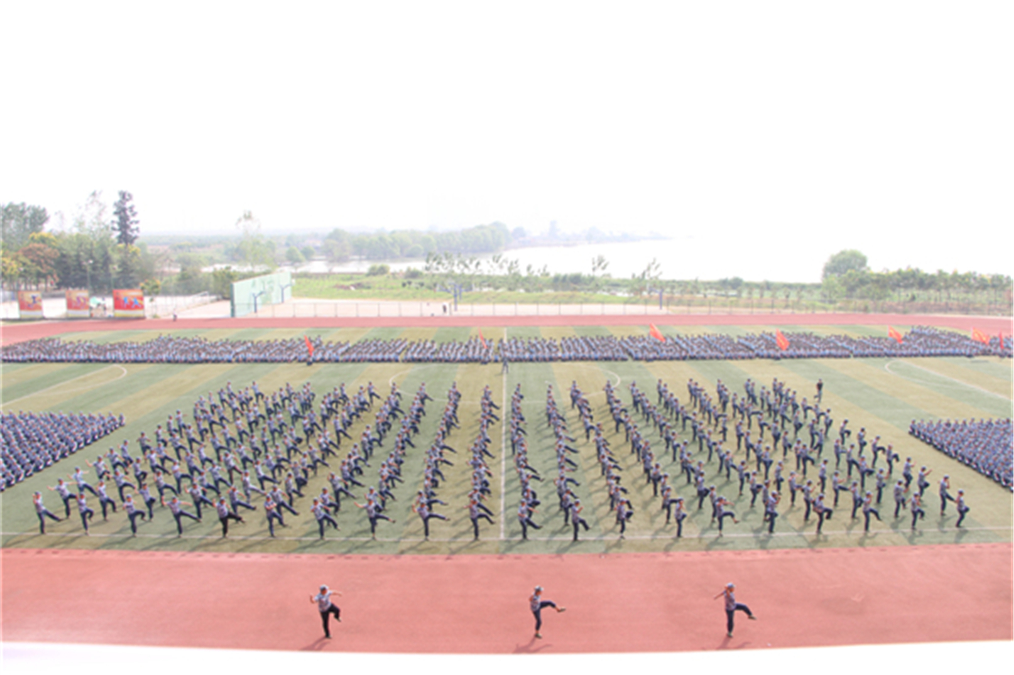 紧接着,由管理学院、经外学院全体男生组成的军体拳方阵进行了军体拳表演,他们声音洪亮、动作整齐,一招一式威武有力,展现了新生良好的身体素质和精神面貌。