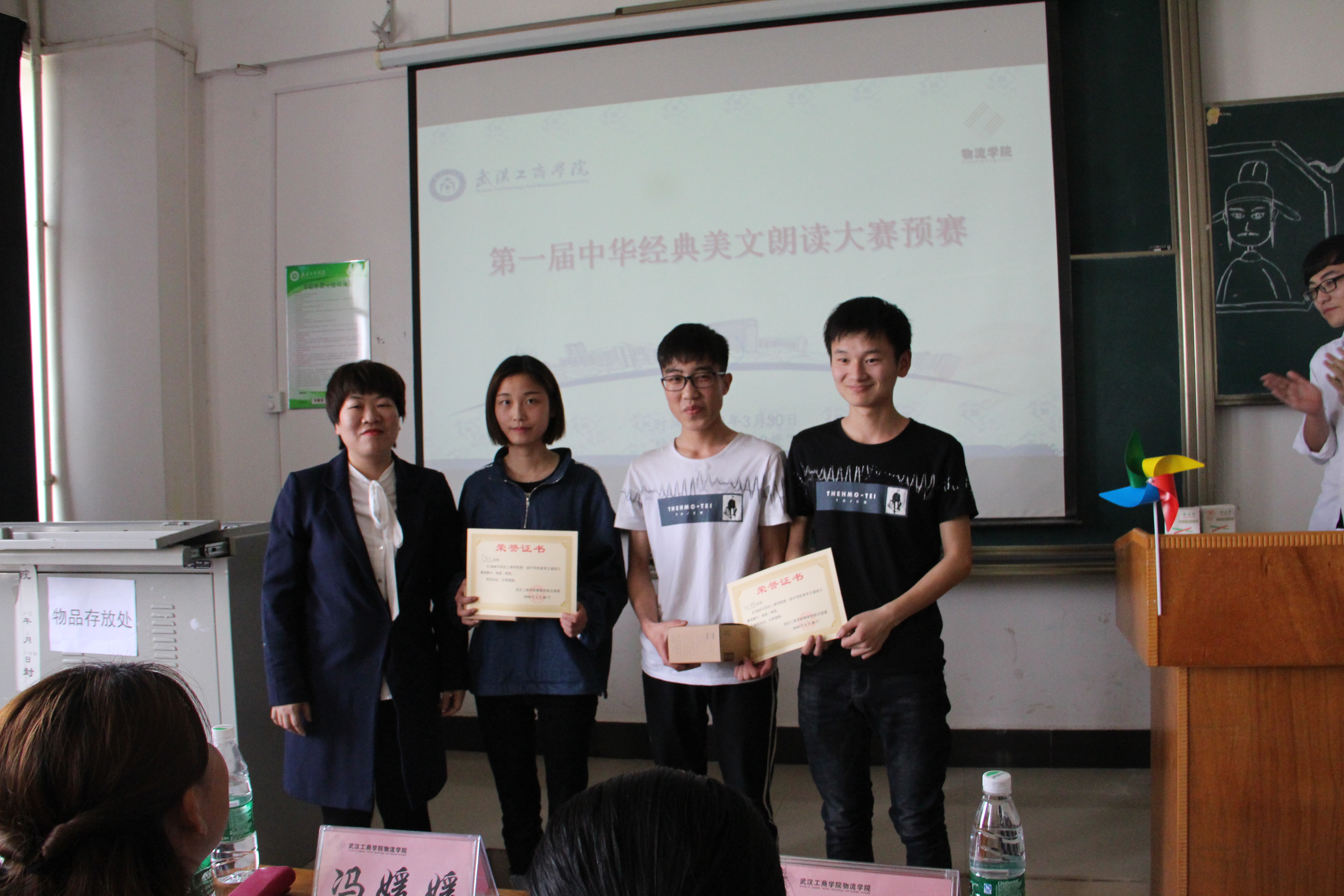 比赛最终决出一等奖1个,二等奖2个,三等奖3个,优胜奖4个。16级物流工程一班的赵婷婷以《少年中国说》夺得本次比赛的一等奖;16级物流管理二班李紫珍带来作品《青玉案·元夕》、17级物流管理二班黄翼飞和袁仲带来作品《沁园春·长沙》获得二等奖;16级物流管理一班黄力力和三班汪梦瑶、17级物流管理一班李旭获得三等奖。党总支书记蔡菁、分团委书记田飞燕、学生党支部书记冯媛媛、分团委副书记周洲依次为获奖者颁发荣誉证书和奖品。